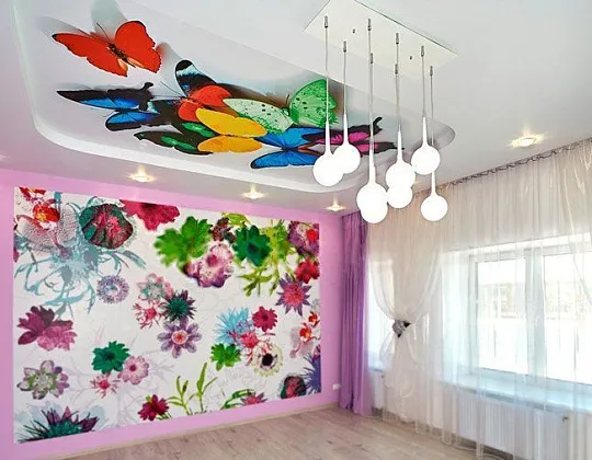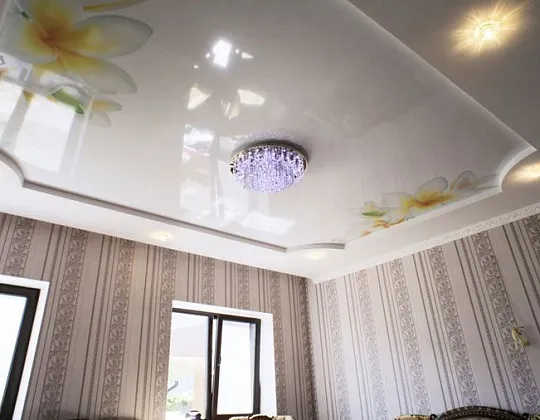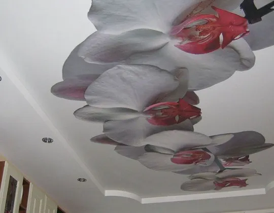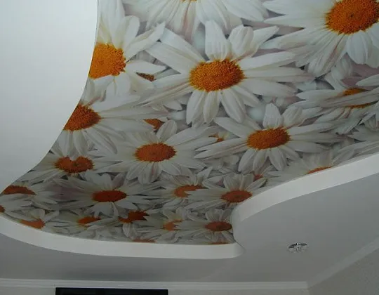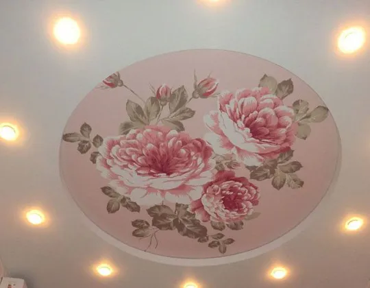 Гостиную в классическом стиле можно подчеркнуть потолком с репродукциями итальянских фресок, а владельцы современных квартир-студий все чаще выбирают абстрактные узоры, нежные цветы.